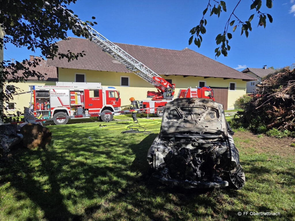 Ein Pkw war aus bisher unbekannter Ursache in Brand geraten. Da sich das Fahrzeug in einer Garage befand, waren bereits Teile des Dachstuhls von starker Rauchentwicklung betroffen. Aus Sicherheitsgründen wurde die Feuerwehr Peuerbach mit ihrem neuen Drill-X-System zur Kontrolle hinzugezogen.