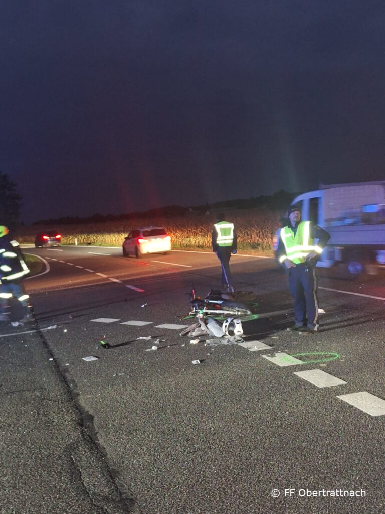Heute früh um 6:21 Uhr wurden wir gemeinsam mit der Feuerwehr Keneding zu einem Verkehrsunfall mit dem Einsatzstichwort „Aufräumarbeiten“ alarmiert. Der Unfall ereignete sich im Kreuzungsbereich zwischen den Ortschaften Ragering und Pötting und betraf einen PKW sowie einen Mopedlenker.