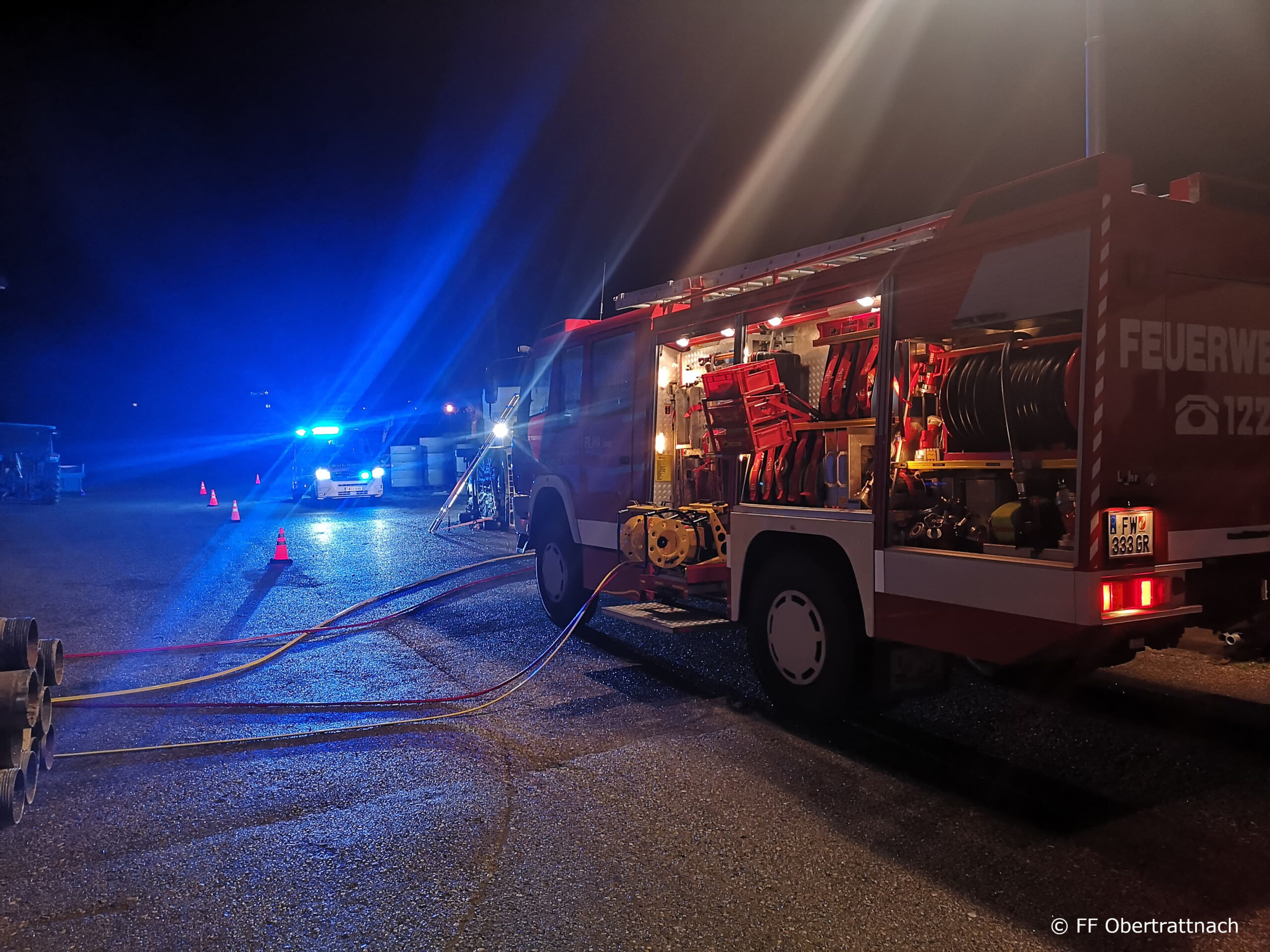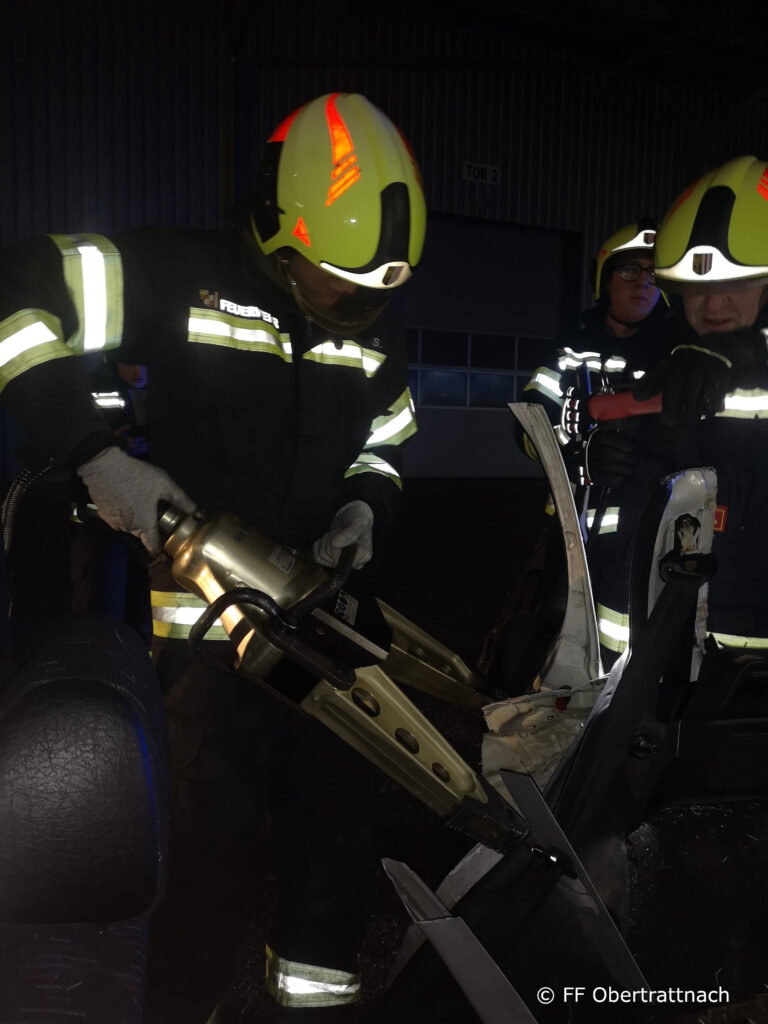 Da die Übung in den Abendstunden stattfand, wurde zusätzlich die Ausleuchtung der Einsatzstelle mittels Lichtmast und Akku-Beleuchtung geübt.